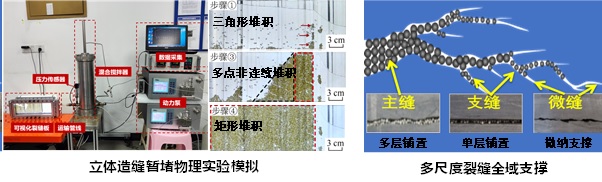 滩坝砂、砂砾岩等致密油藏沉积复杂,孔隙多尺度、纵向多薄层、平面非连续、应力差异大。水力压裂是有效开采这类致密油的核心技术,但裂缝与非均质储层匹配性差、能量供给不足、立体裂缝难以有效形成和流动能力无法长效保持是该类储层改造的技术瓶颈,常规低渗及目前页岩油气的主流改造模式仍无法解决。针对上述难题,项目组历经11年攻关,取得了以下成果: