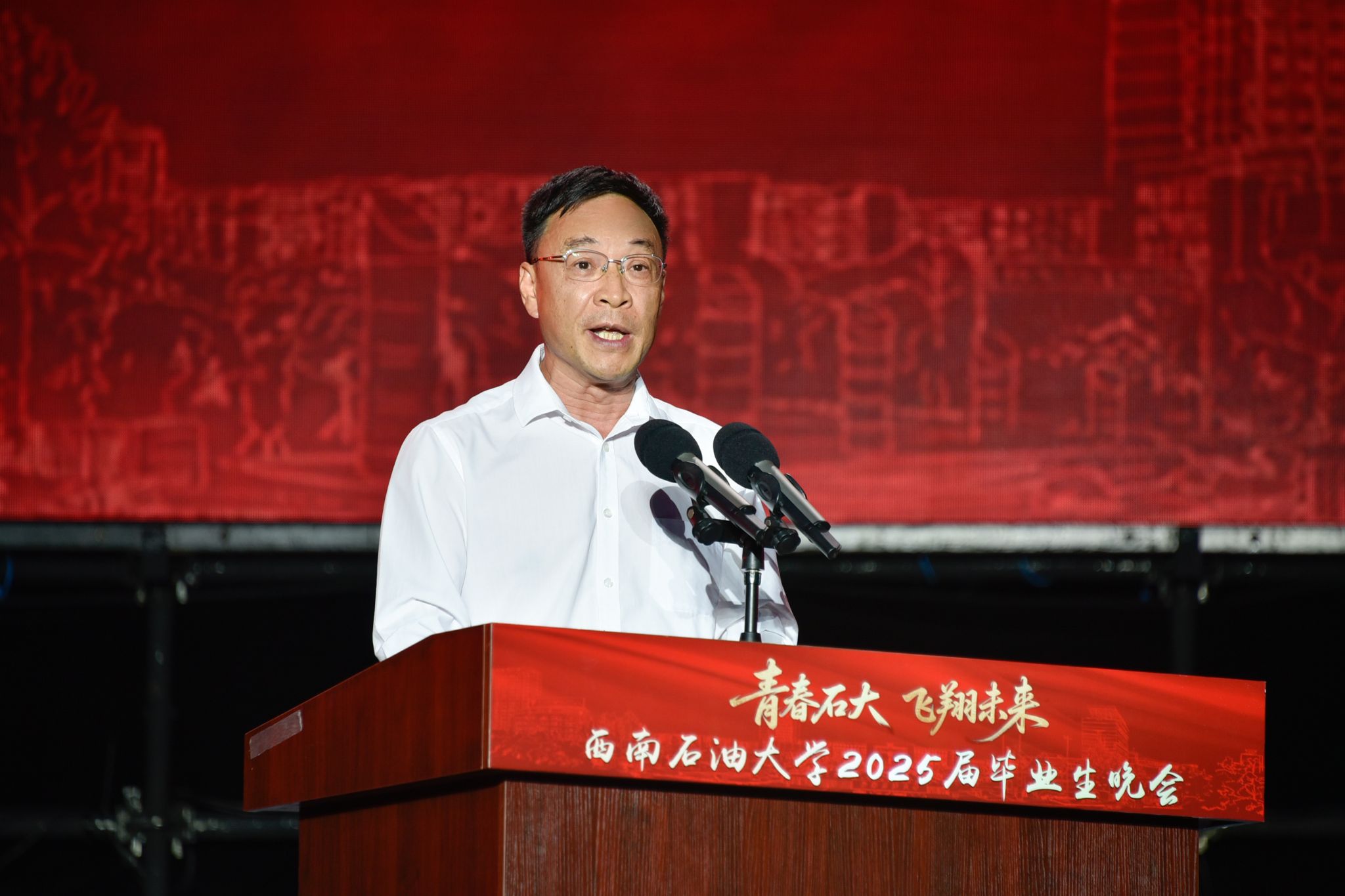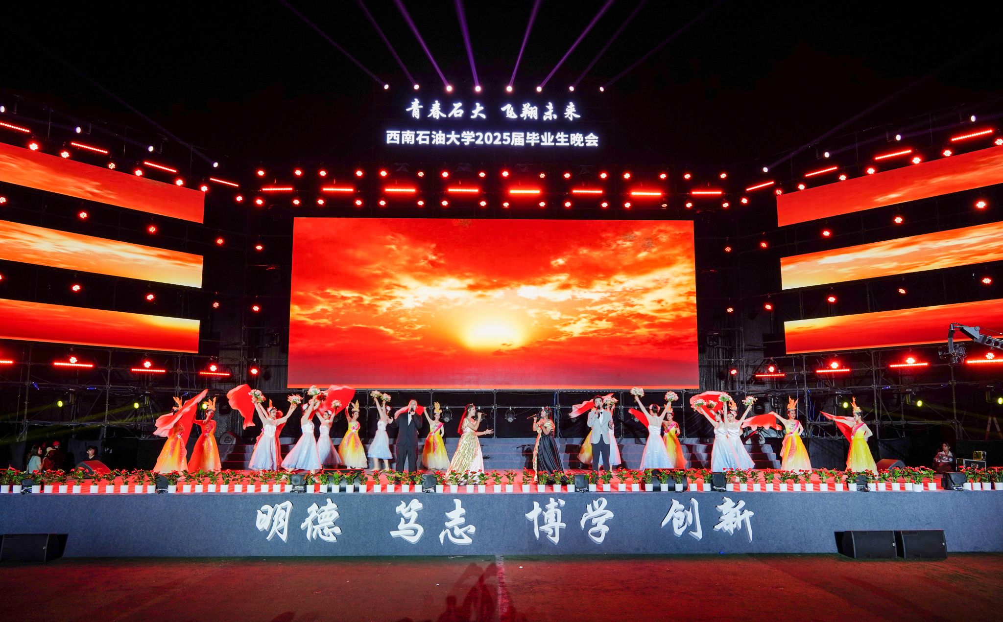 6月16日晚,我校“青春石大 飞翔未来”2025届毕业生晚会在成都校区一期田径场举行。3万余名师生、校友、家长线上线下观看晚会。天南海北的石大人当晚共上了一堂毕业主题的“大思政课”。