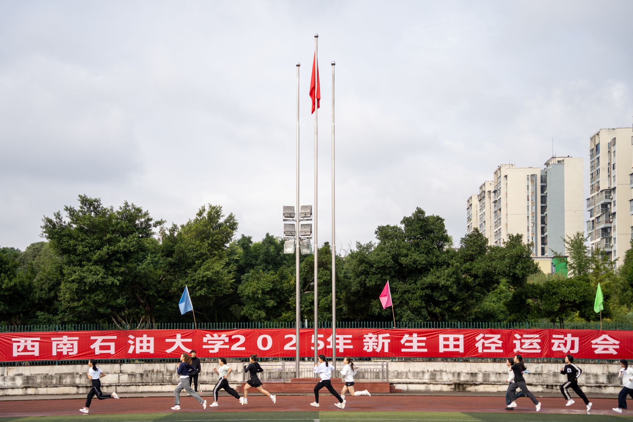 10月25日,学校举行2025年新生田径运动会。在湛蓝的天空下,同学们跳跃,奔跑,以青春之姿向学校的67岁生日致敬。