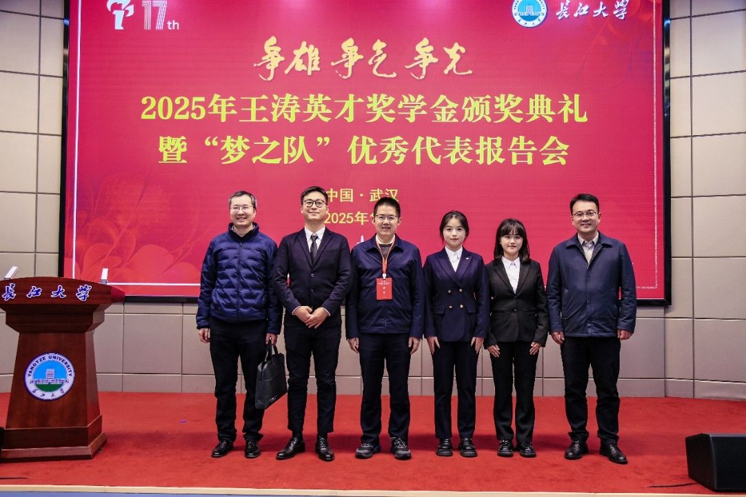 11月17日,第十七届王涛英才奖学金颁奖典礼在长江大学举行,学校党委副书记、纪委书记张明带领学工部、资助中心相关老师以及我校获奖学生参加了本次活动。