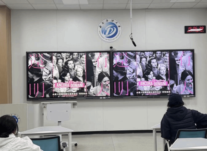 活动伊始,主持人以《百年女性地位变迁与时代使命》为主题展开讲述,梳理了从封建社会到新时代女性地位的演变历程,强调“女性发展始终与国家命运同频共振”。紧接着,全体参与者共同观看女性主题影片《还有明天》。影片以黑白影像为底色,穿插着富有时代感的歌舞元素,生动展现女性在战争创伤与阶级压迫中的顽强抗争,深刻诠释女性觉醒的时代突破,让学生在沉浸式体验中感悟女性的坚韧精神与革命情怀。观影结束后,圆桌研讨环节随即展开,同学们踊跃分享对身边女性力量的感悟。现场还设置了“致敬她力量”互动环节,同学们落笔便签中,以实际行动传递社会主义核心价值观中的平等理念,氛围热烈高涨。